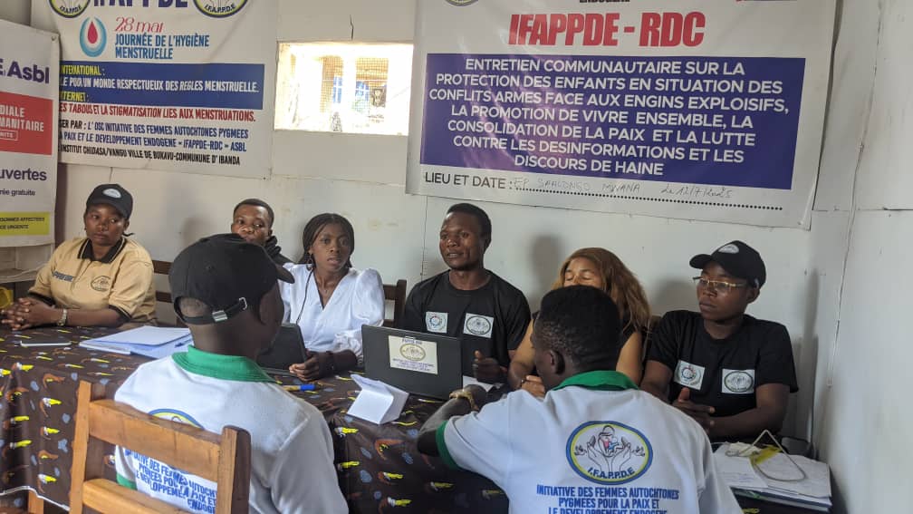 L’Initiative des Femmes Autochtones Pygmées pour la Paix et le Développement Endogène (IFAPPDE Asbl) est une organisation féminine non gouvernementale de droit congolais créée en 2018 par un groupe de jeunes femmes issues de différentes disciplines, animées par un esprit de paix, de solidarité, de développement et de volontariat. Leur vision commune était de contribuer activement à l’autonomisation des communautés autochtones, à la promotion de la cohésion sociale et à la cohabitation pacifique au sein des communautés affectées par les conflits violents. Les fondatrices de l’organisation proviennent de la communauté autochtone et des divers domaines professionnels, notamment l’enseignement, la recherche, la psychologie, la sociologie, la santé, la nutrition, l’agronomie, le développement durable, l’environnement, l’économie et le droit.